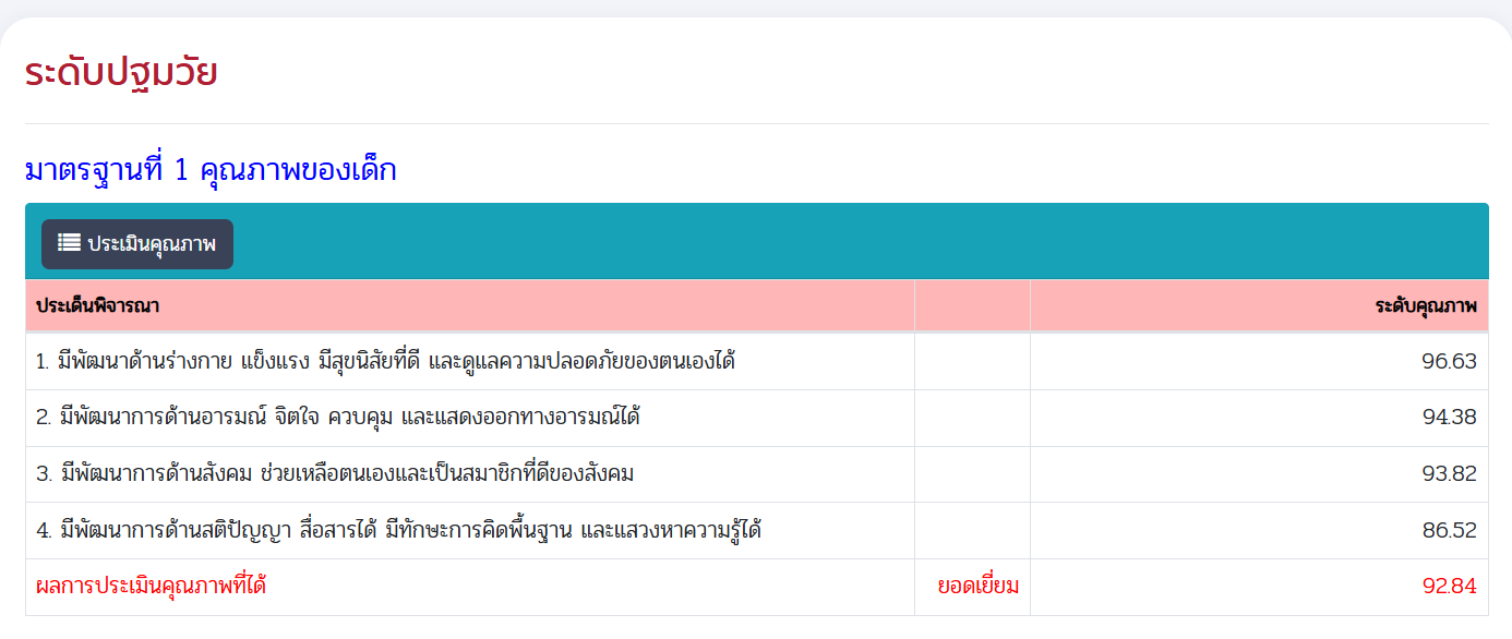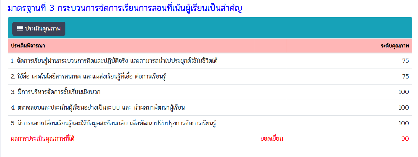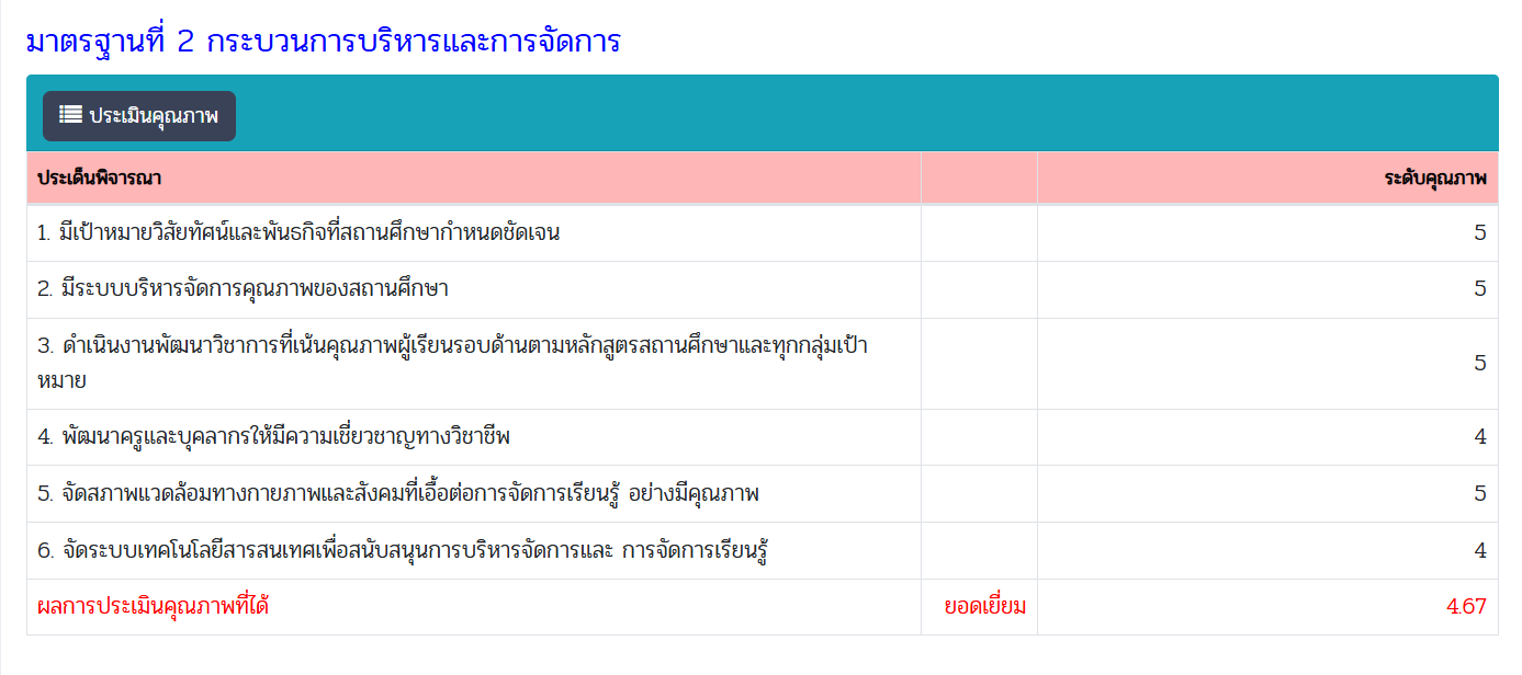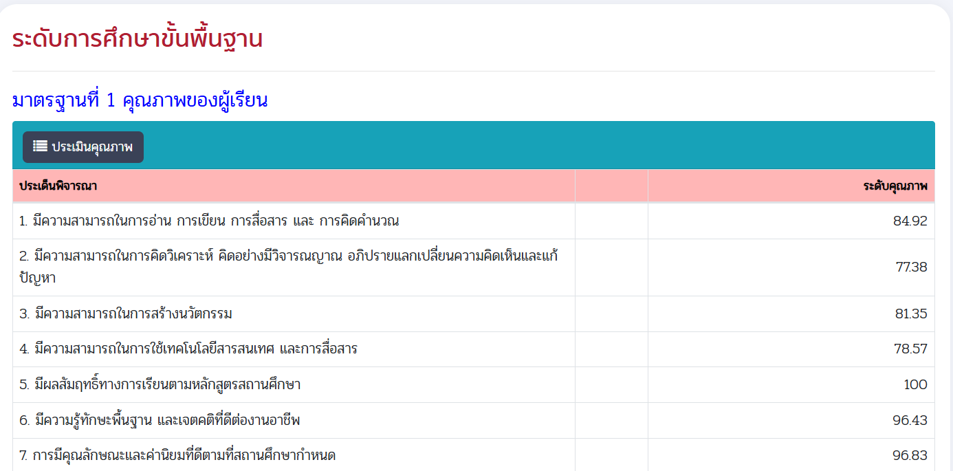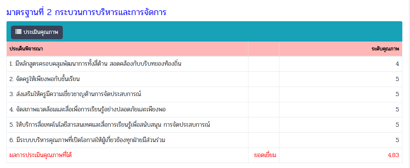 ผลการประเมินคุณภาพตามมาตรฐานการศึกษาของสถานศึกษา