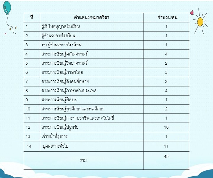 ข้อมูลจำนวนครูและบุคลากร (ประจำชั้น/วิชา)